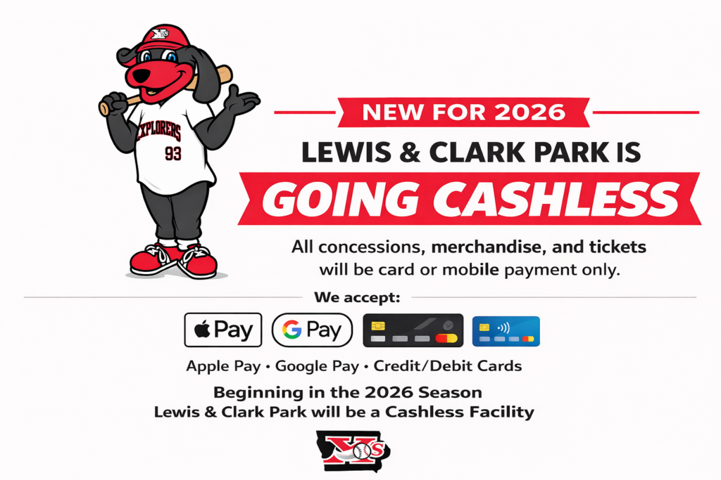 SIOUX CITY, Iowa – The Sioux City Explorers announced today that Lewis and Clark Park is going cashless for the 2026 season for purchases during Explorers games. Beginning opening night, X’s fans attending games in person can now pay quickly and safely using debit or credit cards to make concessions, merchandise and ticket purchases. Fans enjoying X’s baseball will have no need to carry cash or a checkbook—their tickets, food, and merchandise are all just a tap away using Apple Pay, Google Pay, credit or debit cards. Ballpark patrons will enjoy Explorers games in 2026 with a faster, easier, and more convenient experience during this American Association baseball season.